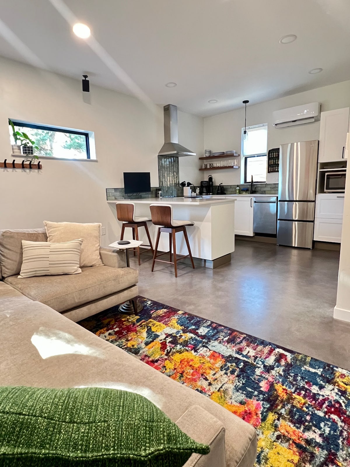 Remodeled in 2022, and professionally designed with your comfort in mind - Our guests tell us it's LOCATION LOCATION LOCATION! Relax in an oasis with abundant light and surrounded by mature trees. Ski at Bogus and come home to soak in a shared hot tub. Quick access to the greenbelt. Our guests rave about the sheets and the nicely stocked kitchen with fresh coffee & creamer for the morning. This property will make you wish you could stay longer.