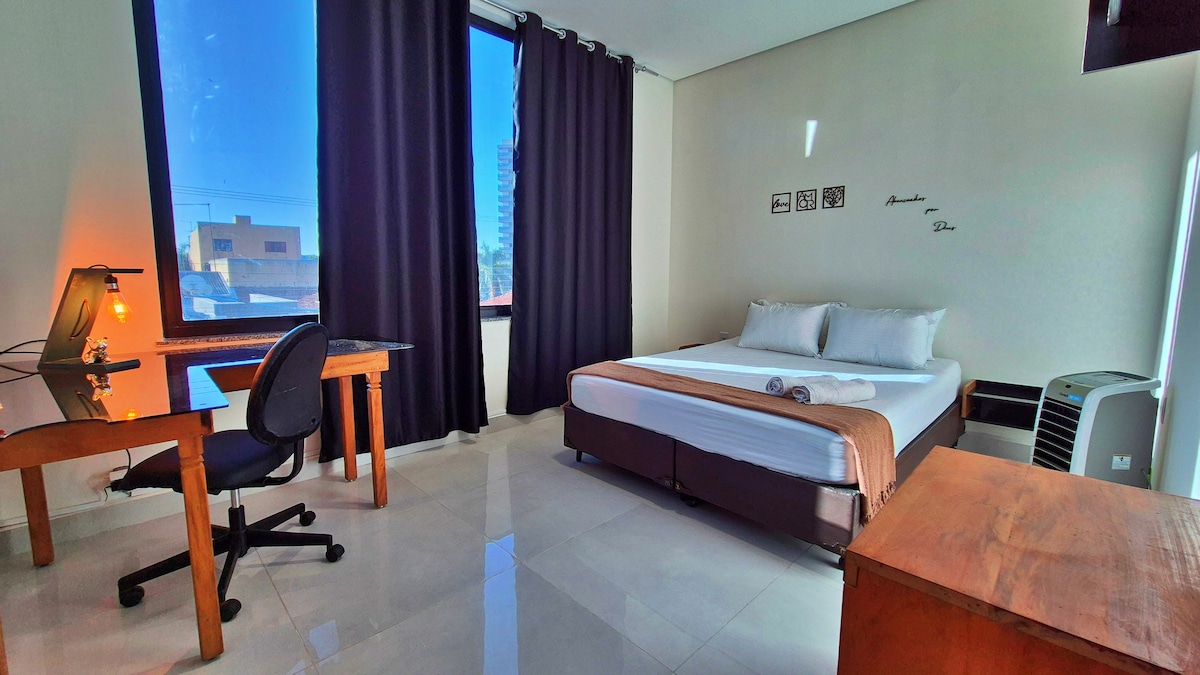 Este estúdio foi projetado para oferecer uma experiência única, unindo conforto, estilo e praticidade. A decoração moderna e cuidadosamente planejada cria um ambiente aconchegante, ideal para relaxar ou trabalhar com tranquilidade. Cada detalhe foi pensado para proporcionar bem-estar, desde a iluminação aconchegante até os móveis funcionais e elegantes. Perfeito para quem busca um espaço exclusivo, cheio de charme e personalidade. Colchão americano Stearns and Fosters dos melhores hotéis de NY.