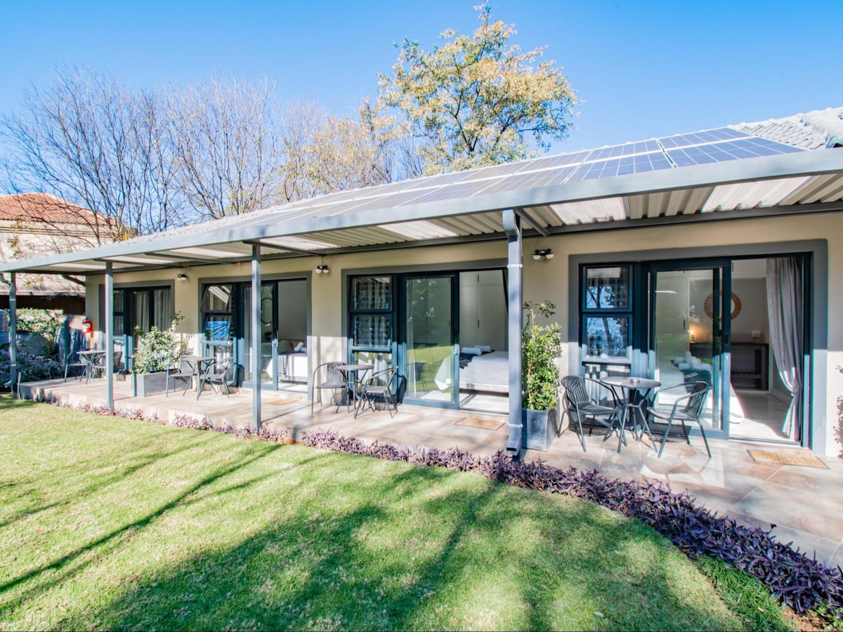 The Studio room is fully self-catering, air-conditioned, has a private entrance, en-suite bathroom with a shower, kitchenette, body soap, select DStv channels and free Wi-Fi. The guest house is quiet and guest privacy is ensured. We are solar powered, so not affected by loadshedding. There is one secure parking per room inside the property.