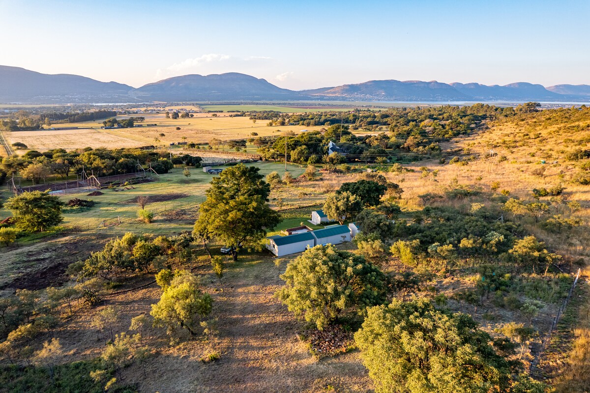 Escape to our unique industrial-style accommodation in the heart of Skeerpoort, South Africa, nestled amidst serene pecan fields near Hartbeespoort Dam. Our picturesque farm offers a blend of rustic charm and modern comfort on a working farm, perfect for a tranquil family getaway. Enjoy breathtaking views, relax in nature, and explore outdoor activities in the surrounding area. Discover the beauty of our Pecan Fields farm and enjoy your stay in our cozy family tin house!