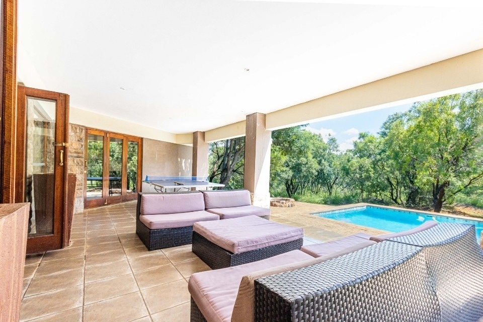 A magnificent homestead on a private game estate at the foot of the Magaliesberg Mountain range. The spacious garden is full of healing herbs, vegetables, fruit and flowers for foraging and feasting. On request, we also offer a private Chef for special functions or full farm style, country kitchen catering and cleaning. Six spacious bedrooms en suite, all opening up onto verandahs with mountain views. Large function room/yoga/dance studio. Large swimming pool, lapa and floodlit tennis court