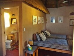 Spacious unit with private lounge, kitchen and patio. Away from the other units for that extra tranquility. Energy-efficient evaporative cooling unit throughout the space. Price includes 1 game drive per night booked in Big 5 territory. Ideal for honeymoons, anniversaries, or just that special getaway. Self-Catering only. Game drives may however be shared.