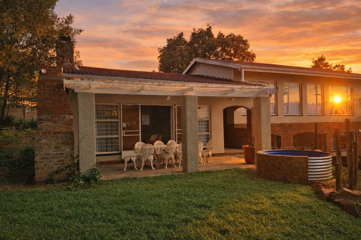 Maison Rosina (The Rosina House) A lovely fully fledged self-styled 3 bedroom quaint bohemian space with modern finishes, this space offers amazing views of the Sunset and Pilanesberg Safari park mountains from your patio. Located on the foothills of the serene Pilanesburg mountains, tucked away in a lovely old peaceful neighbourhood bordering the safari park, a perfect home away from home whilst you venture into the wild of the Pilanesberg safari park.