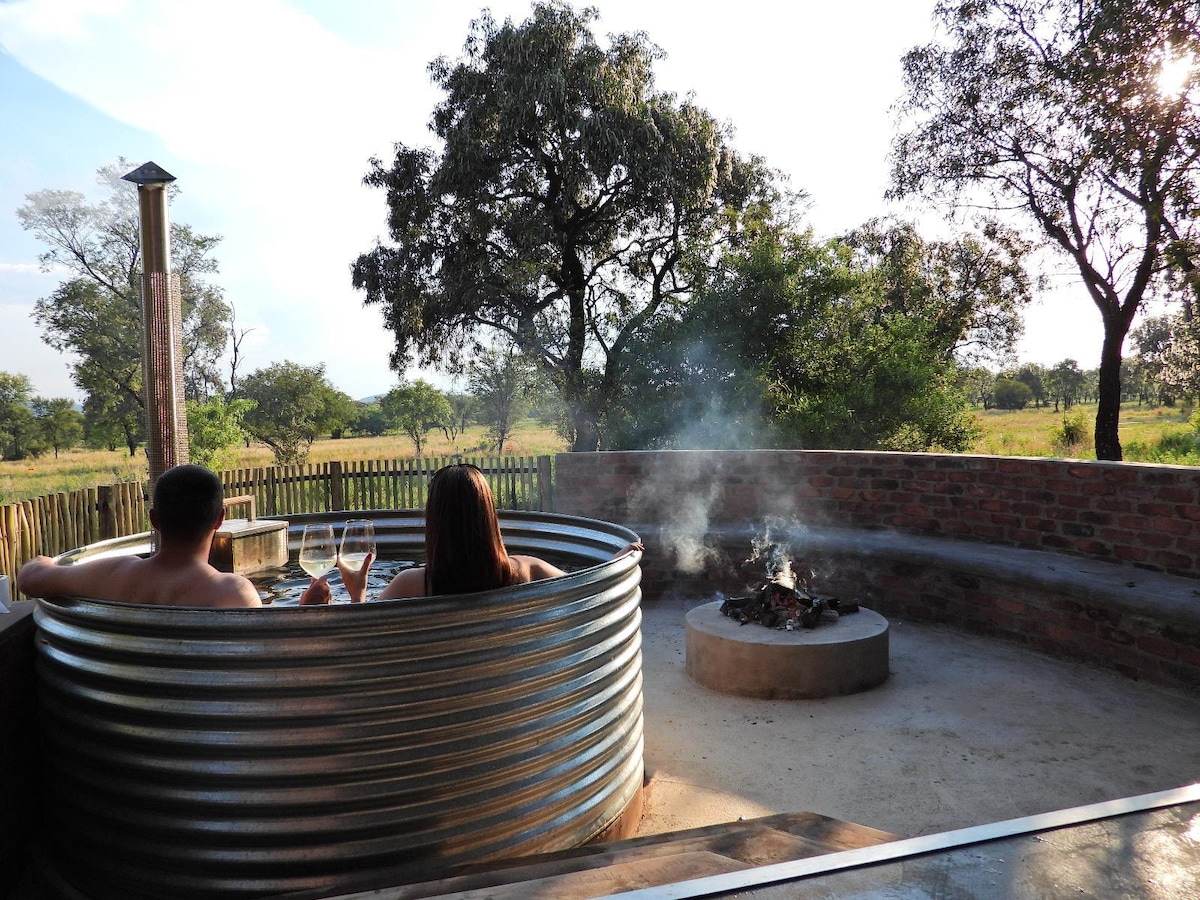 Hunters Hill Outpost Tented Camp is situated in the heart of UNESCO World Heritage Site. A private camp with 2 SELF CATERING tents, each separate toilet & open-air shower. Equipped kitchenettes, sleeper couch for 1 person & deck overlooking the Magailiesburg Mountains. Linen & amenities supplied. Boma with a fire pit & braai facilities, small splash pool & sun deck. Totally off-the-grid. Ideal for families, mountain bikers & those just needing a break.