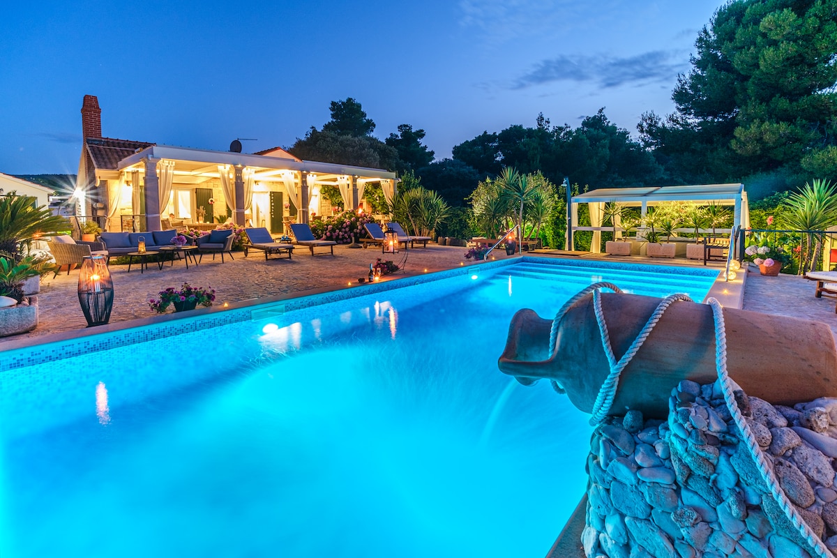 My name is Branka Kirigin, I'm from Supetar (Brač). Location: first row from the sea on quiet beach Occupancy: 8+2 Villa Bela is luxurious 4 bedroom beachfront villa, surrounded with large garden and more than 350 square meters of sea view terraces and sun-decks surrounded by greenery. Exclusively designed and fully equipped with private heated swimming pool (10m*4m), outdoor hot tub and direct beach access. Villa is situated by the beach, between village Mirca and town Supetar.