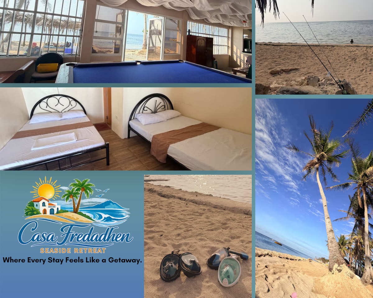 Peaceful 2BR villa at Bragado Peninsula with stunning sea views. The master bedroom has a queen bed and private bath; the second room features a queen-sized double-deck bed. Enjoy a cozy sala, full kitchen, and breezy veranda perfect for morning coffee or sunset views. No cellular signal, but fast and reliable Starlink WiFi keeps you connected. Ideal for families, small groups, or remote work. Relax, unwind, and enjoy the calm of this quiet coastal escape.