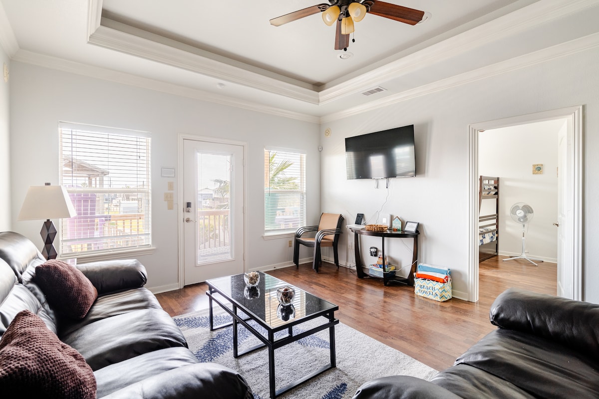 Prime Location! Beautifully renovated and thoughtfully designed beach retreat, blending modern luxury with extra amenities. Walk to the famous Strand for dining, shopping, art, and nightlife. Just steps from Stewart & Porretto beaches, cruises, and UTMB. Minutes by car to Pleasure Pier, Moody Gardens, Schlitterbahn, and the Seawall. Historic charm meets comfort with 2 bedrooms, 2 bathrooms and a queen sofa bed. King bed in the primary suite! Ideal for families, couples, or solo adventurers!