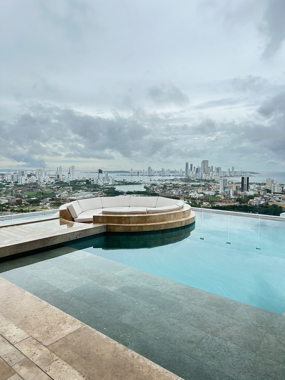 Fully equipped 2 bedroom Apt. inside the walled city Chic new building with rooftop pool and jacuzzi (not heated) custom furniture: cedar and teak wood Marble bathrooms+hot water fast Wi-Fi 65” T.V. Netflix 18m2 balcony indoor/outdoor tropical garden view 2 sofas + 6 seater dining table Main bedroom: private bathroom. 24 h front desk Steps away from coffee shops, restaurants and nightlife near main city pier Near La Serrezuela, a precious bullring transformed into a shopping and culinary center