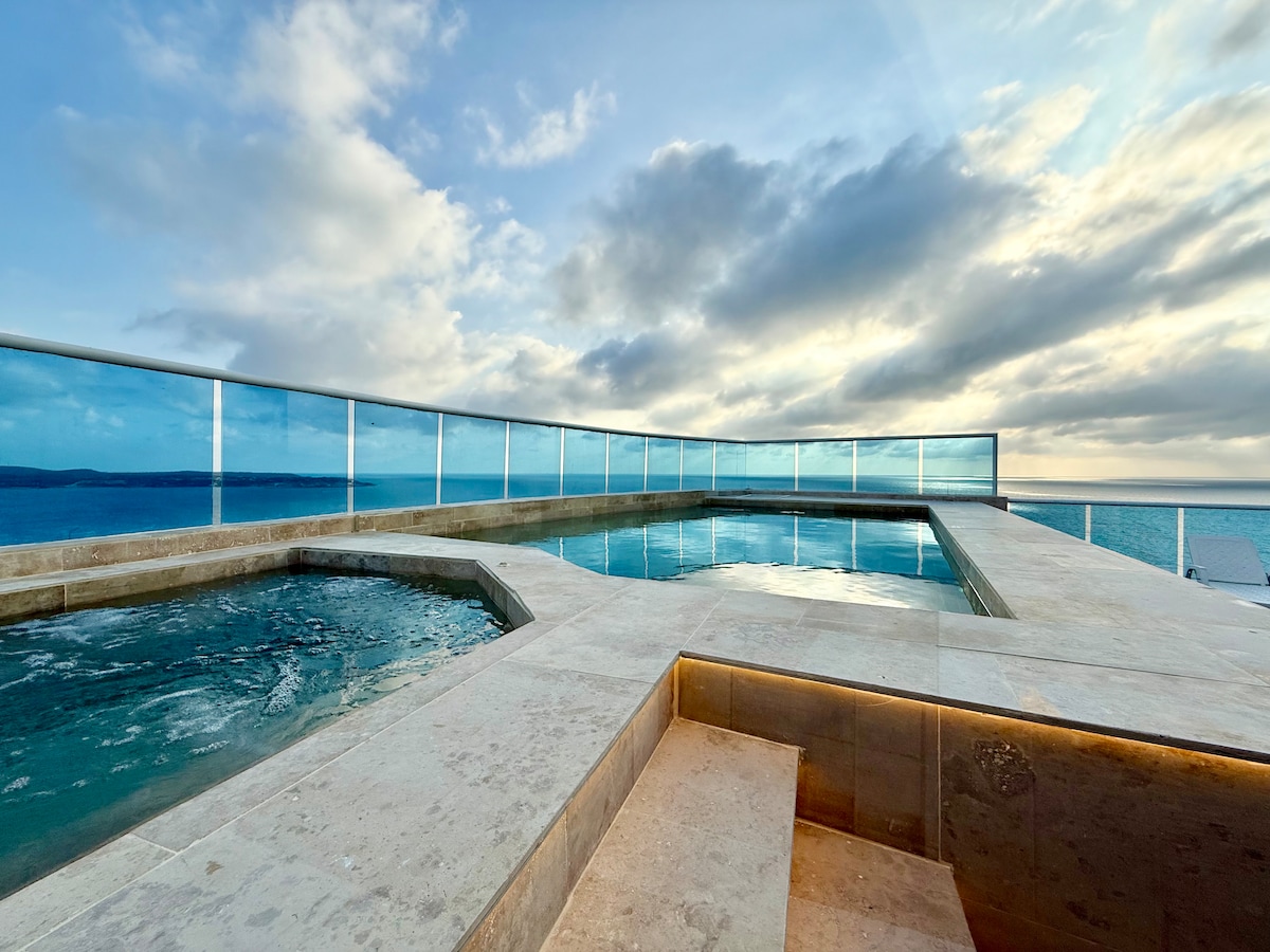Penthouse - Duplex 260 metros cuadrados, amplias terrazas en sus dos pisos, Jacuzzi privado en balcón del piso superior, tina cubierta privada en el baño principal, sonido ambiental wifi en 3 espacios diferentes, aires integrales en techos, TV gigantes, y las mejores vistas directas al mar de todo Cartagena, te harán sentir una verdadera sensación de confort en este espectacular apartamento, con hermosos acabados y accesorios . Además, tiene una ubicación estratégica: ¡Queda cerca de TODO!
