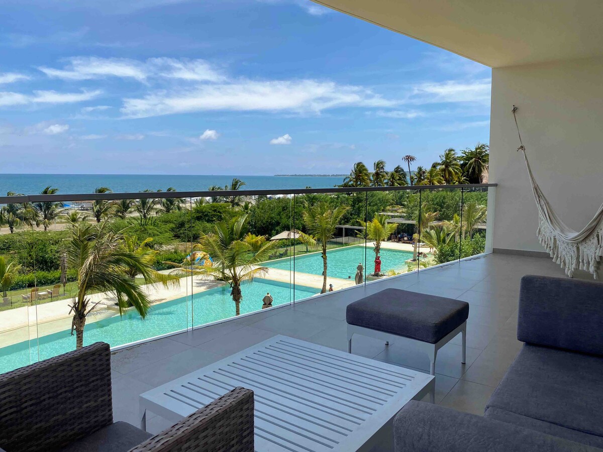 This beautiful beachfront loft is located in the Morros Zoe condominium, Serena del Mar — The Dream City — one of Cartagena’s newest and most exclusive areas. "Direct Access to the Private Beach" "Exclusive resort with magnificent spaces to relax and enjoy" "Professional cleaning and disinfection" • 10 minutes from Rafael Nuñez International Airport • 15 minutes from the Historic Walled City • 3 minutes from Las Ramblas Shopping Plaza