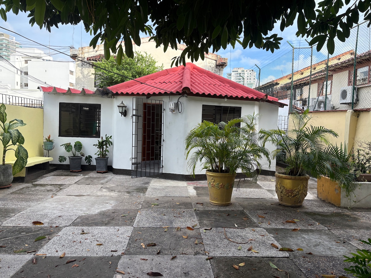 Este lindo MINI ESTUDIO es una habitación con baño y cocina privados. Ideal para estadías de ocio o trabajo. Ubicado en el barrio Canapote (Daniel Lemaitre), barrio local, casa de huéspedes muy tranquila, rodeada de plantas. El centro histórico y playas de Marbella se encuentran a 10 minutos en taxi. La playa del barrio Crespo está a 10-15 minutos caminando. Un alojamiento muy económico para visitar Cartagena.