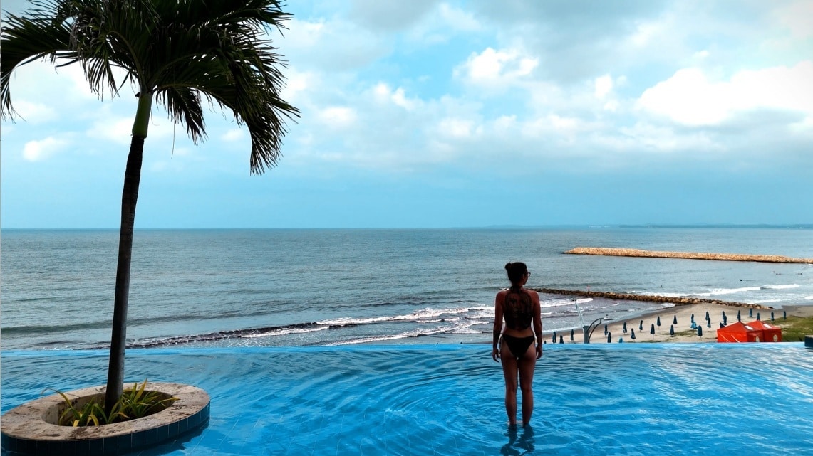 Suite de estilo único en el complejo turístico H2, frente a la playa de Bocagrande. Desde la piscina sin fin del edificio disfrutarás de la vista a la playa con increíbles puestas de sol y desde el amplio balcón del apartamento podrás disfrutar la vista al muelle y hermosos amaneceres. El complejo turístico cuenta con acceso directo al Centro Comercial Mall Bocagrande, donde encontrarás variedad de restaurantes, supermercados y almacenes.