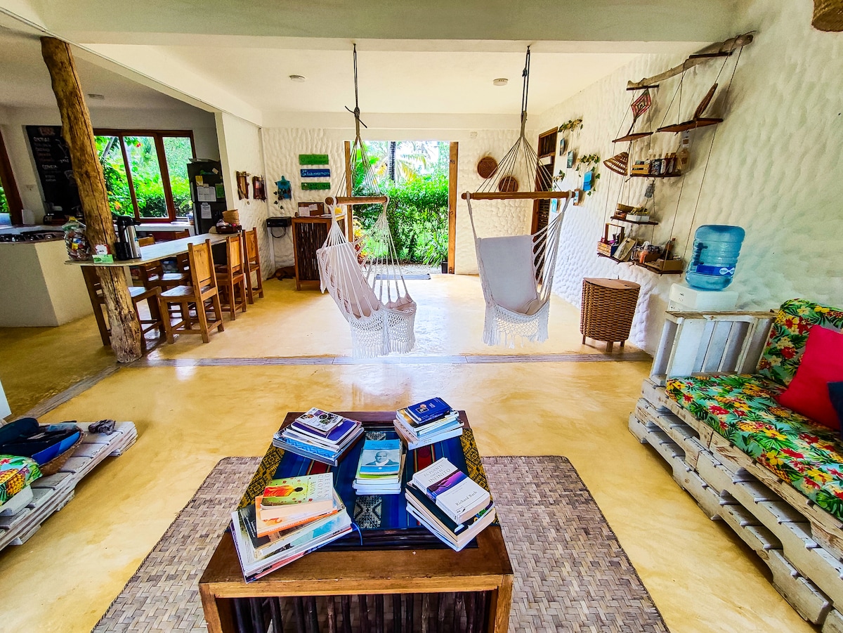 Esta habitación compartida consta de 4 literas, tiene capacidad para 8 personas. Es un lugar increíble entre la ciénaga, el manglar y la playa. No querrás irte de este lugar tan único y encantador. Ten en cuenta que si eres colombiano o extranjero residente en Colombia debes cancelar el IVA del 19% al llegar al hostal, este valor no está liquidado en la reserva que hagas con Airbnb