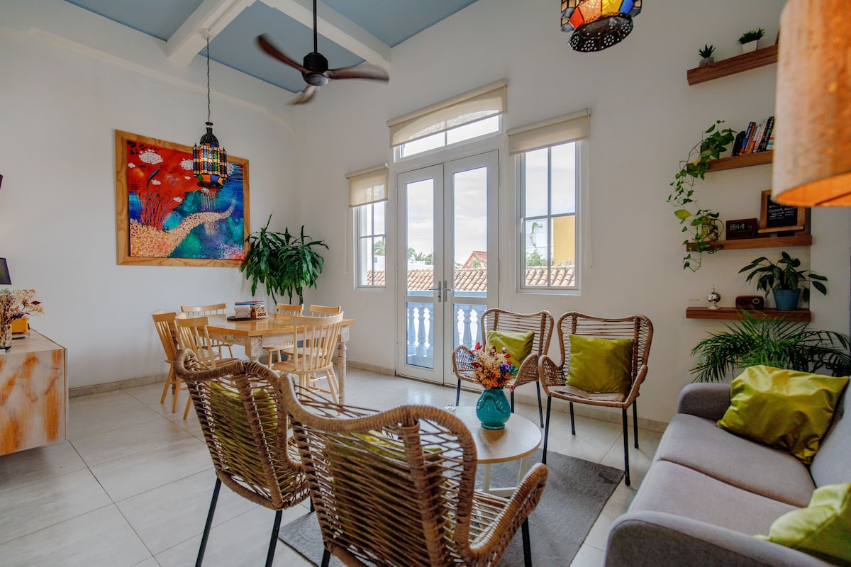 Stay in the heart of Cartagena with a curated local experience. Your stay includes access to a private concierge who can help design your trip—from hidden restaurants to unforgettable moments. Recently redecorated 2-bedroom apartment with full A/C, a bright and relaxed atmosphere, Smart TV, PS4, dining for six, and 24/7 security. Steps from vibrant plazas, cafés, and historic landmarks—your Caribbean retreat awaits.