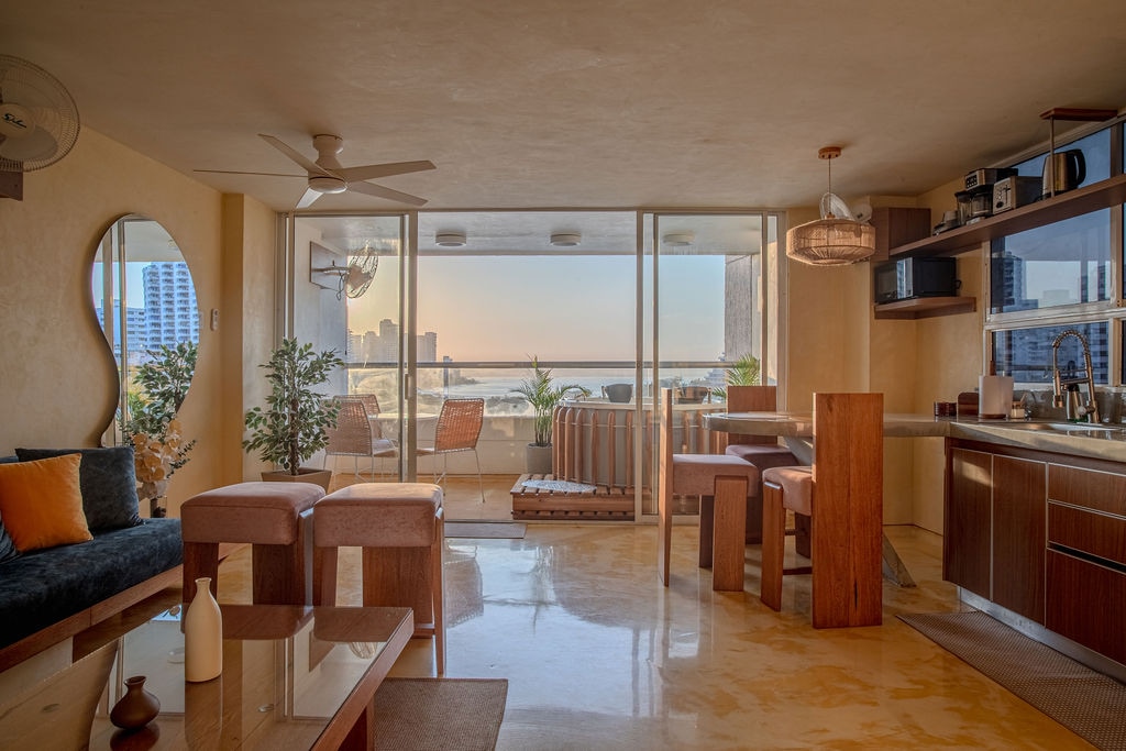 Our elegant apartment is located in one of the most complete and modern buildings in the exclusive "Cielo Mar" sector. You'll be just a few meters from "Playa Azul," one of the city's best beaches, 10 minutes from the Historic Center, and only 5 minutes from the airport. The apartment has extraordinary views of the bay and ocean, which you can enjoy from the private jacuzzi on your balcony. You can also enjoy the incredible rooftop infinity pools, complete with jacuzzi, sauna, terrace bar & BBQ
