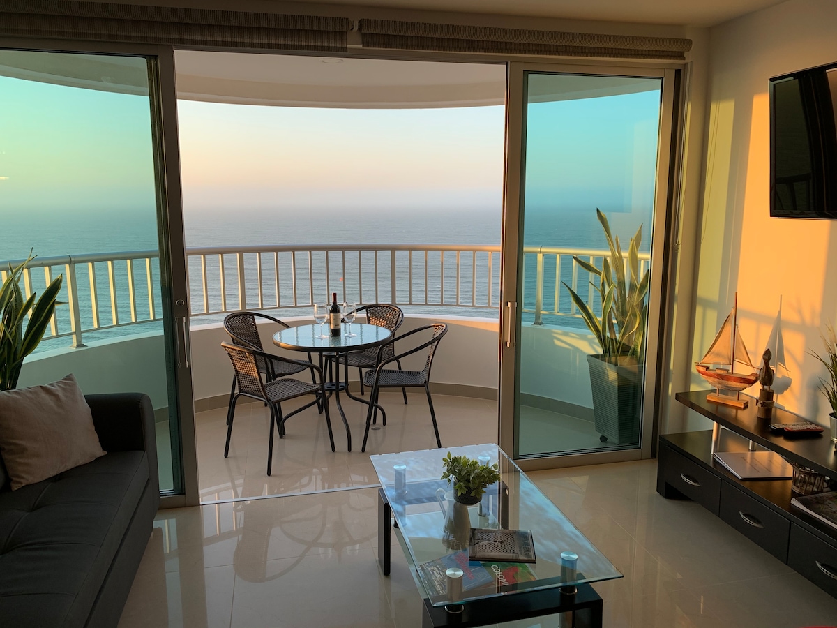 Our elegant apartment is located in one of the most complete and modern buildings in the exclusive "Cielo Mar" sector. You'll be just a few meters from "Playa Azul," one of the city's best beaches, 10 minutes from the Historic Center, and only 5 minutes from the airport. The apartment has extraordinary views of the bay and ocean, which you can enjoy from the private jacuzzi on your balcony. You can also enjoy the incredible rooftop infinity pools, complete with jacuzzi, sauna, terrace bar & BBQ