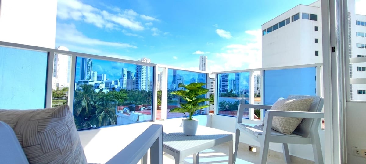 ✨ Welcome to your retreat in Cartagena: a luxury high-floor apartment facing the sea, with two private balconies and a 180° panoramic view of the Caribbean and the bay. Designed for your comfort, it features a modern living room with floor-to-ceiling windows, a fully equipped kitchen, fast WiFi, and digital check-in. Enjoy the infinity pool, poolside bar, and ocean-view gym. Located in Bocagrande, steps from the beach and minutes from the Walled City. 🌊🌴
