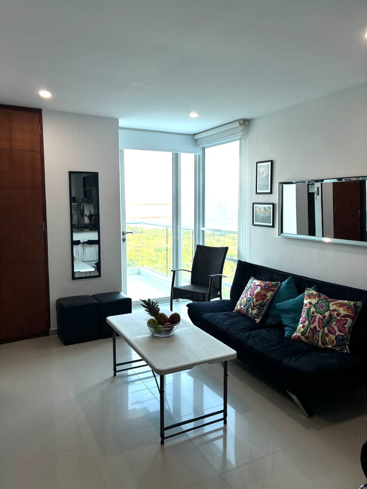 Aparta-Suite on the 9th floor of the exclusive Cartagena Beach building, equipped with everything you need for a wonderful stay in Cartagena. Enjoy Wi-Fi, direct views of the lagoon and airport, and beautiful sunsets. Walk along the park and beach, or exercise with dance and aerobics in the linear park. Surrounded by shops and just 2 minutes from Rafael Núñez Airport. The building is still under construction, so common areas are not yet available.