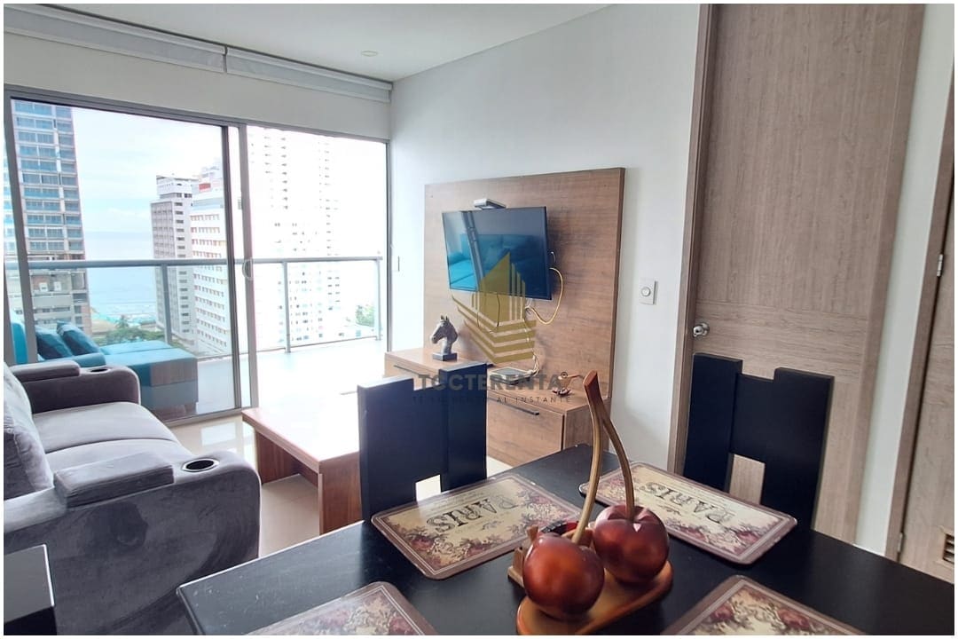 Despierta con una vista espectacular del mar Caribe y las luces de la ciudad. El apartamento cuenta con espacios amplios, luminosos y climatizados, diseñados para ofrecerte descanso y bienestar. La cocina completamente equipada, la sala invita al relax y el balcón amplio. El edificio ofrece comodidades de primer nivel: piscina, gimnasio, zona social, parqueadero y seguridad 24 horas. Ya sea que viajes por placer o trabajo, este apartamento te ofrece exclusividad. PROHIBIDA LAS VISITAS