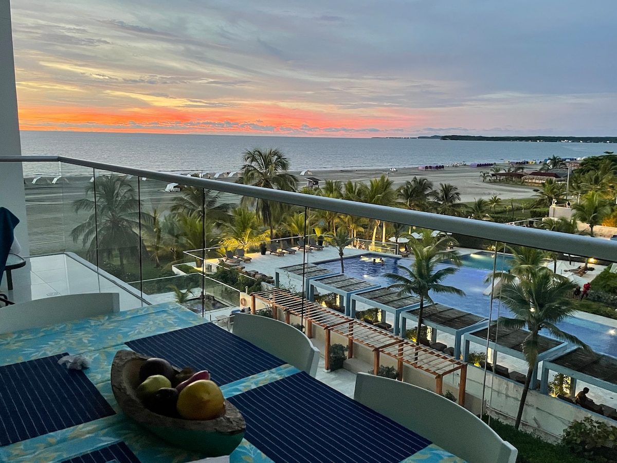 Awesome condo at The Beach Radisson Resort Residences, extraordinary views of the Cienaga, beach and the city; direct hotel beach access to the nicest beaches of Cartagena. 5 minutes to the airport and 10 minutes to the Old city (Wall City) by car . Guest have access to all the Resort amenities like gym, multiple pools, bars, restaurants, spa, sky jacuzzis, wifi, A/C, BBQ areas, 24/7 front desk, security, bellman, room service, etc. Just registered guests are allowed in the apartment