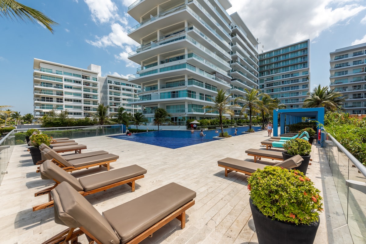 Recién renovado apartamento con vista única al mar y zona de piscinas, aire acondicionado en todos sus espacios, internet de alta velocidad en fibra óptica, ubicado a 5 minutos del aeropuerto, a 10 minutos en taxi de la ciudad amurallada y con acceso directo a las mejores playas de Cartagena, cuenta con gimnasio en las zonas comunes. Ubicado en la zona norte (morros) de hoteles como Holiday Inn, Radisson, Sonesta, Las Americas