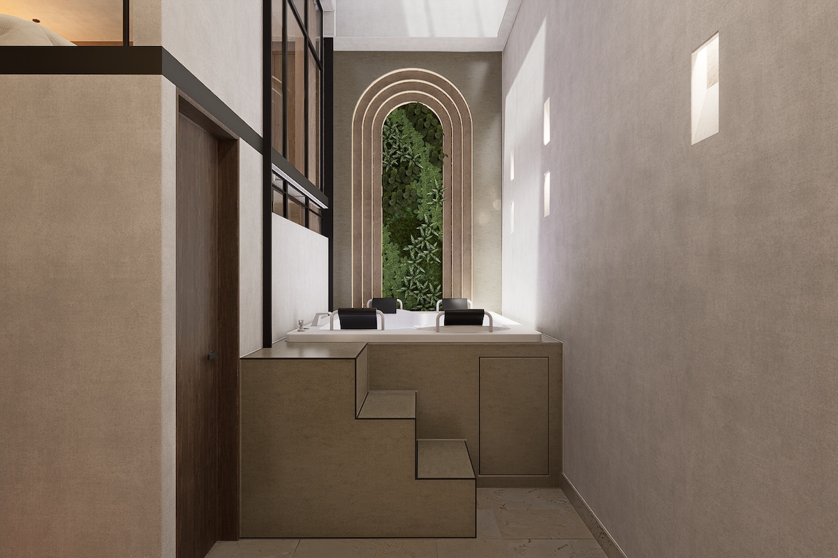 配备热水浴缸的浮动顶层公寓