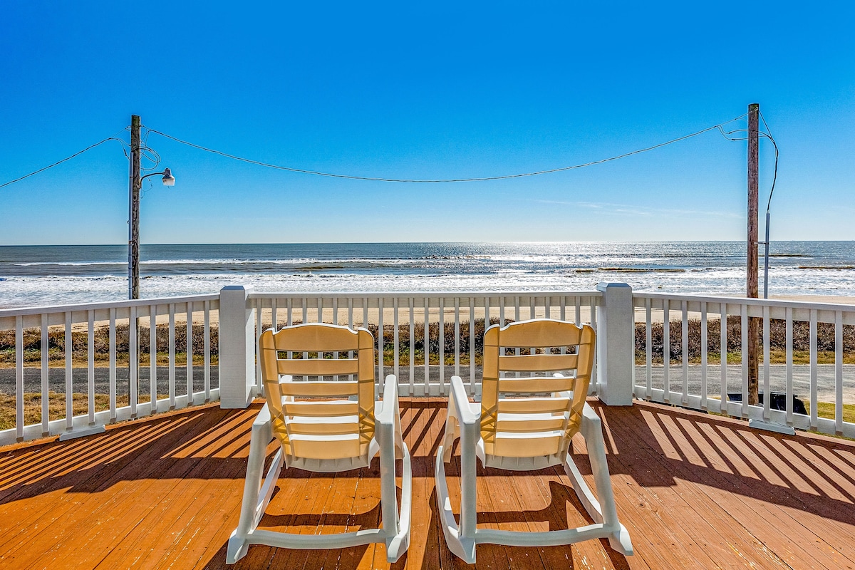 Take a Seabatical from life's hustle & bustle with breathtaking beachfront views just steps from the beach! Relax with the whole family in this tranquil beach house, outside of Crystal Beach, while only 5 minutes from The Big Store. View the beautiful sunrise & sunset from the large private deck overlooking the ocean! Enjoy grilling and games or walk right out to the beach for fun in the sun! Paradise for bird watchers, beachcombers, and laid-back beachgoers.