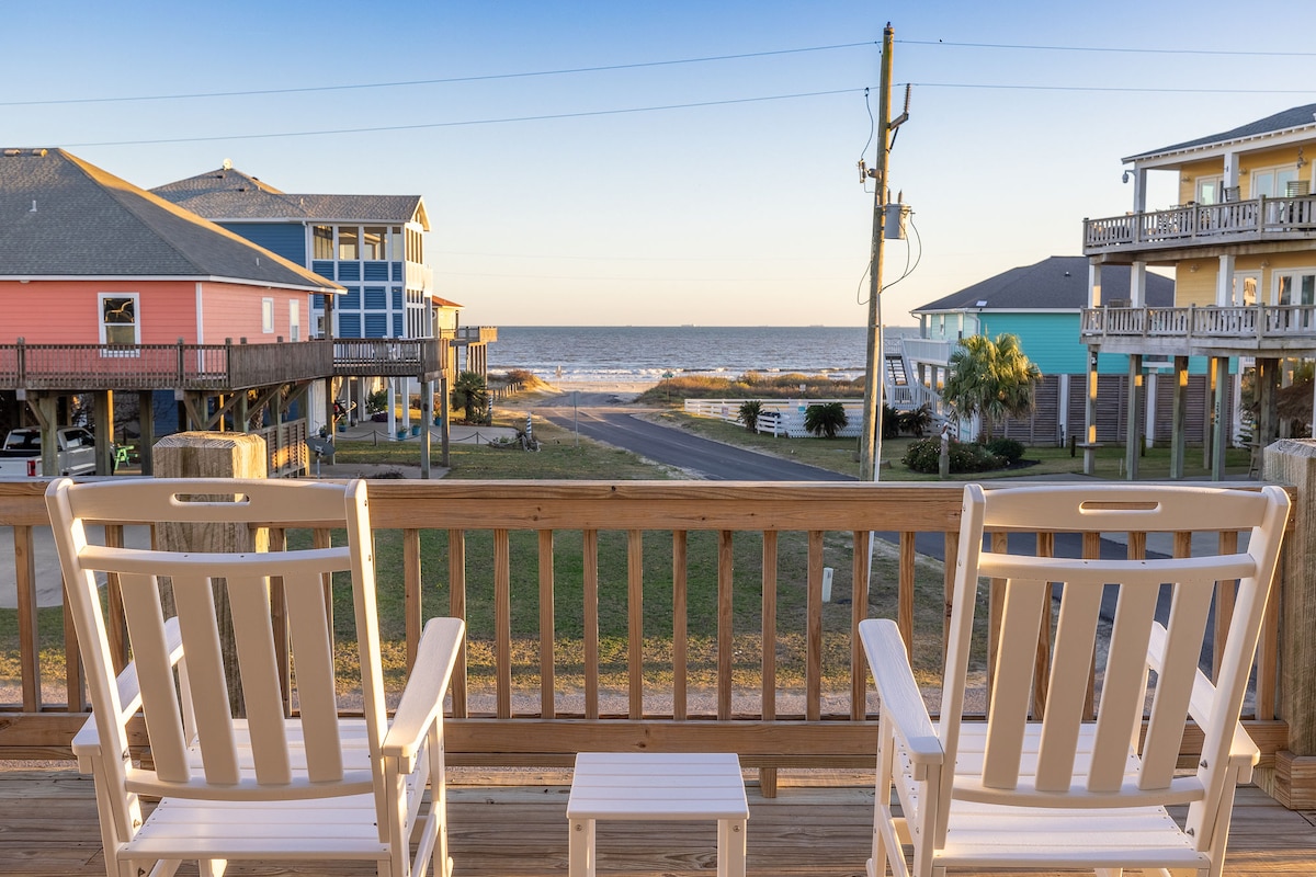 Welcome to this breathtaking beachfront beauty—your little slice of paradise right here in Crystal Beach!! This 4 bed, 2 bath beachfront oasis has everything you need for a perfect vacation. Spectacular views of both the sunset and sunrise, spacious accommodations, ground floor tiki bar, chef’s kitchen, propane grill and so much more—we look forward to hosting you!!