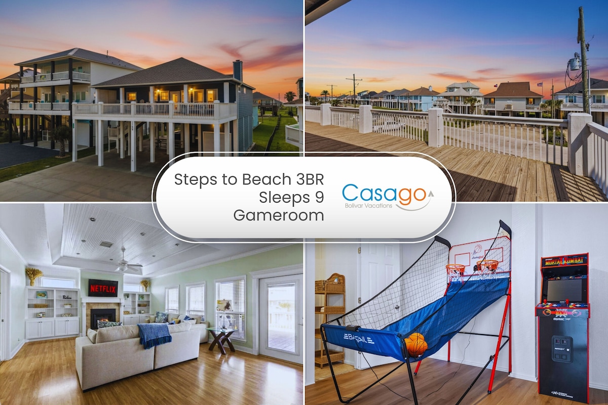 令人惊叹的3卧室|游戏室,距离海滩仅几步之遥,火坑