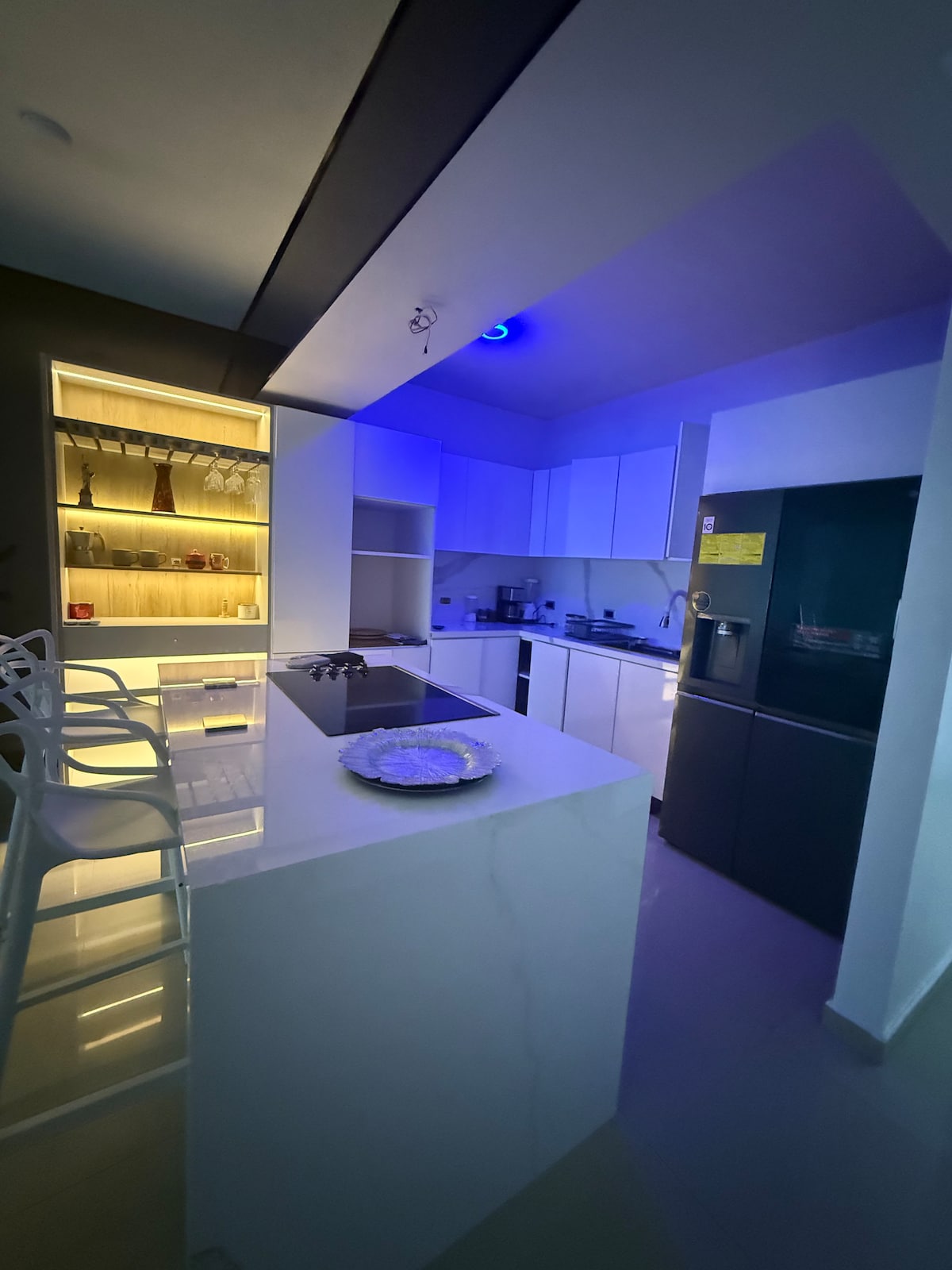 * Cocina: Totalmente equipada, con utensilios y electrodomésticos cafetera,lavadora ,secadora,plancha, microondas,tostiarepa, Air fryer, licuadora. Filtro de agua potable fría y caliente. Cuentas con un sistema de agua en caso de emergencia. *Cama : 1 Cama king y 2 matrimonial Dentro de lo que te ofrecemos para tu estadía esta: servicio de wifi, Netflix, DIRECTV, Alexa, máquina para hacer ejercicios. Jabón, crema dental, champú, secador y plancha de cabello. Toallas y lencería en general. etc