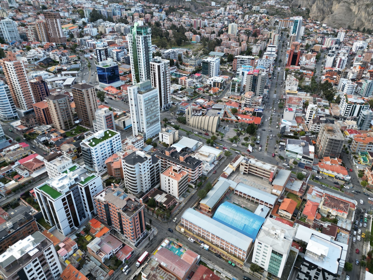 ApartHotel con cocina privada en el corazón de La Paz Bienvenido a nuestro moderno y luminoso apartamento dentro del ApartHotel Gloria, ubicado en el centro empresarial de La Paz. Ideal para estancias cortas o largas, estarás a solo pasos de cafés, restaurantes, supermercados y bancos. Disfruta de una cama doble muy cómoda, cocina equipada, baño privado y Wi-Fi de alta velocidad. La zona es segura, bien conectada y ofrece todo lo necesario para una estadía sin preocupaciones.