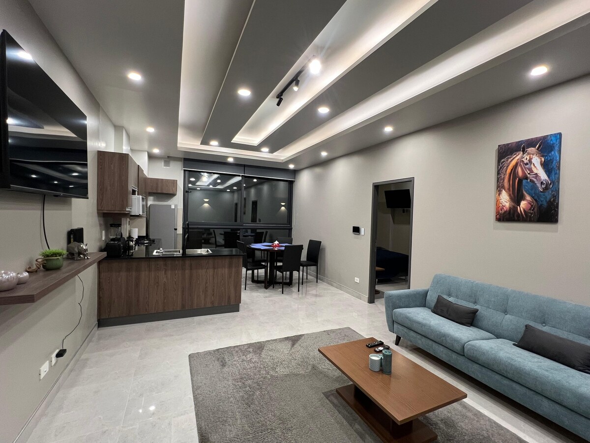 Experience high-tech luxury in San Miguel. This spacious apartment features a master suite with a King-size bed and walk-in closet, plus a comfortable sofa bed in the living area. Includes a full guest bathroom for extra privacy. Enjoy radiant floor heating, high ceilings, a designer kitchen, better than a hotel: high-speed Wi-Fi, outdoor dining, and premium finishes. The perfect blend of comfort and technology in La Paz. Book your stay now!