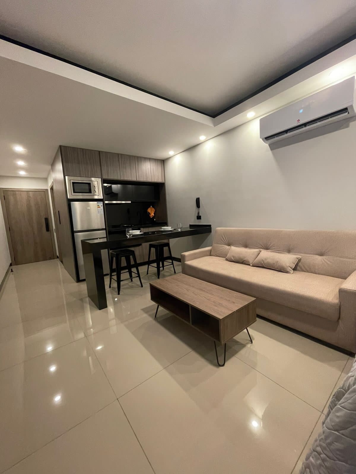 Si buscas un lugar cómodo y elegante en Santa Cruz, este apartamento esta en el corazón de Equipetrol y es tu mejor elección. Un monoambiente moderno de 32 m² con cama King, zona de trabajo, cocina equipada y WiFi veloz, creado para que disfrutes cada momento de tu estadía. Relájate en un espacio exclusivo con aire acondicionado y una vista privilegiada desde el piso 12 del edificio. Aquí vivirás el equilibrio perfecto entre descanso, estilo y practicidad. Tu experiencia especial te espera!