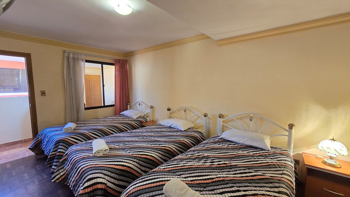 Hermosa, soleada y cómoda habitación con baño privado en la mejor ubicación de Copacabana. Cuenta con ducha con agua caliente, Wifi, Smart TV, cocina compartida, bar y mesa de billar para huéspedes, terraza y parrilla en área común. Ideal para viajeros solos o parejas Disfruta del fácil acceso a tiendas y restaurantes populares desde este encantador espacio para quedarte.