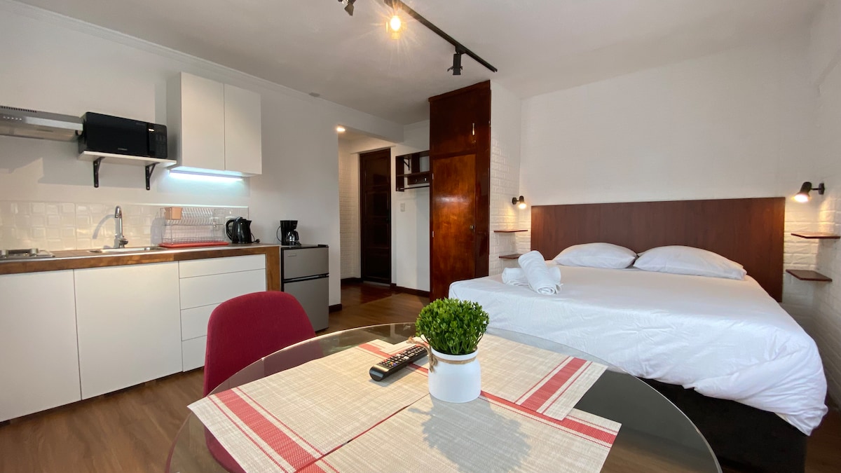 Equipetrol :豪华单间公寓,超大双人床和餐厅