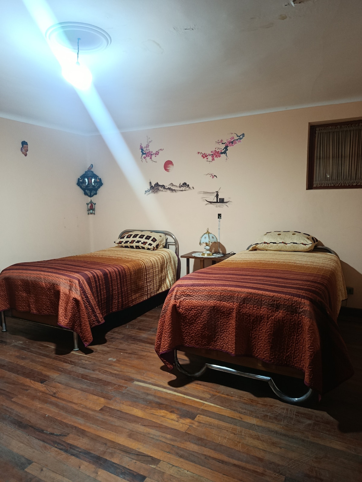 Espacioso, elegante y acogedor departamento familiar en una de las mejores zonas de Sucre, a 7 minutos del centro y 5 de la Avenida de las Américas, cerca de los principales atractivos de la ciudad blanca. Cuenta con dos habitaciones: la principal con cama de dos plazas y armario y otra con 2 camas de plaza y media y armario. Una sala con sofá y comedor y una cocina completamente equipada para tu comodidad, un baño amplio con todos los servicios.