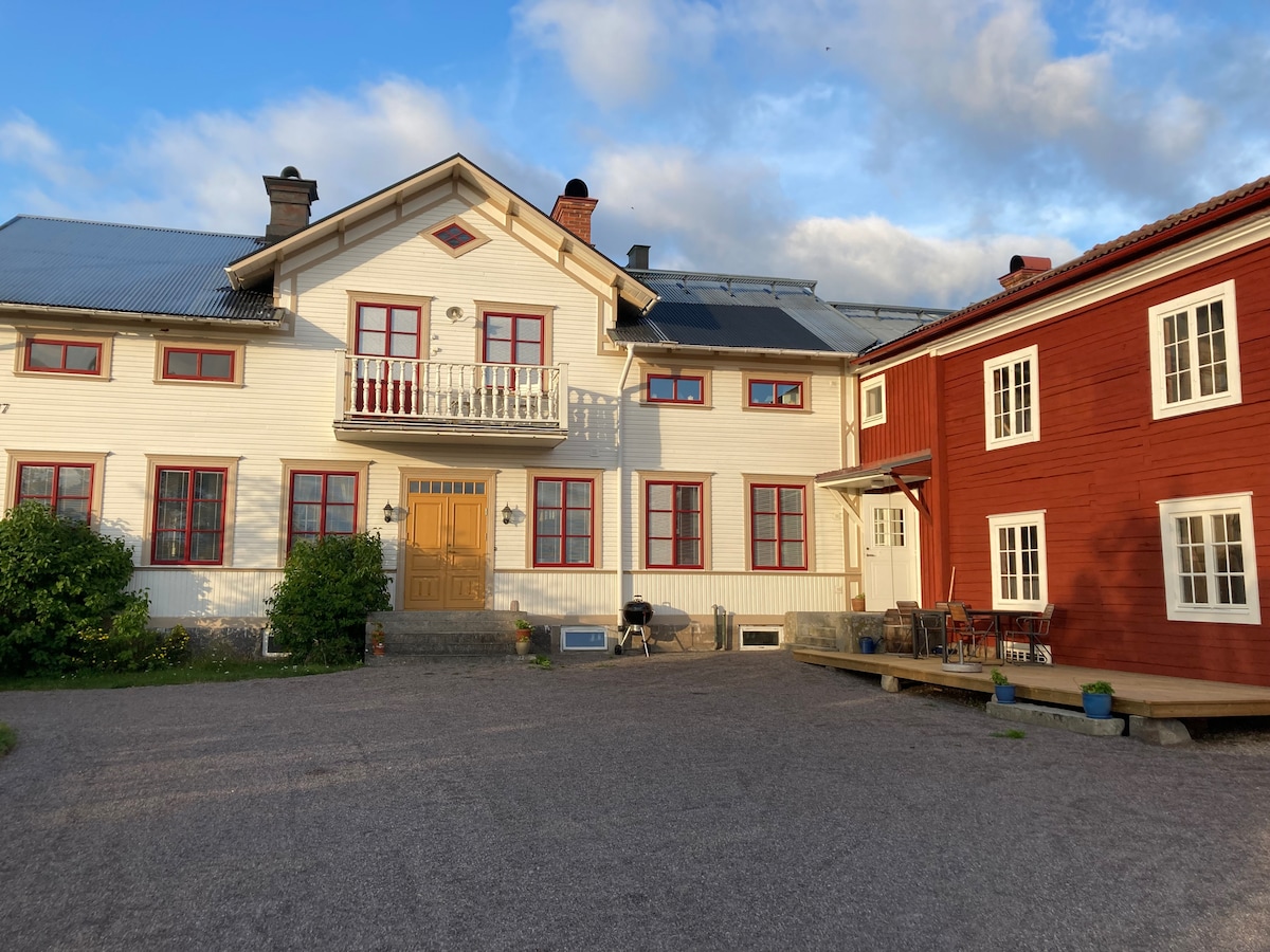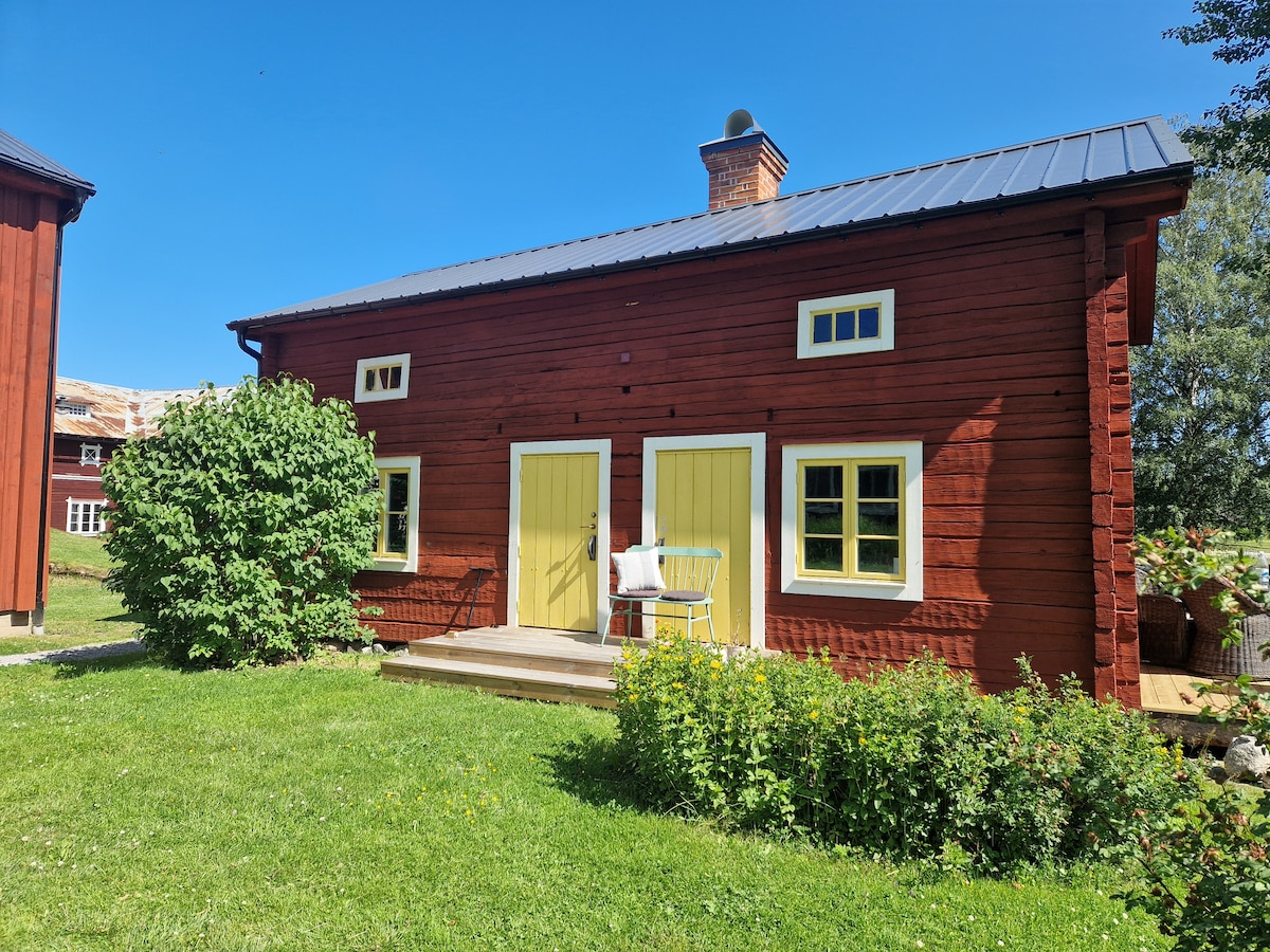 Bo i vår varsamt renoverade bagarstuga från slutet av 1800-talet. Stugan ligger i anslutning till gården vid dammarna som tidigare försåg vattenhjulet med vattenkraft. Stugan: Stort rum med dubbelsäng, braskamin samt matbord för 6 personer. Sovrum med våningssäng. Kök med spishäll, micro, kaffebryggare samt köksutrustning. Badrum med toa, dusch golvvärme och handdukstork. Uppvärmt förråd för skidor, cykel, etc kan ordnas mot mindre ersättning. Möjlighet till laddning av elbil (11 kW).