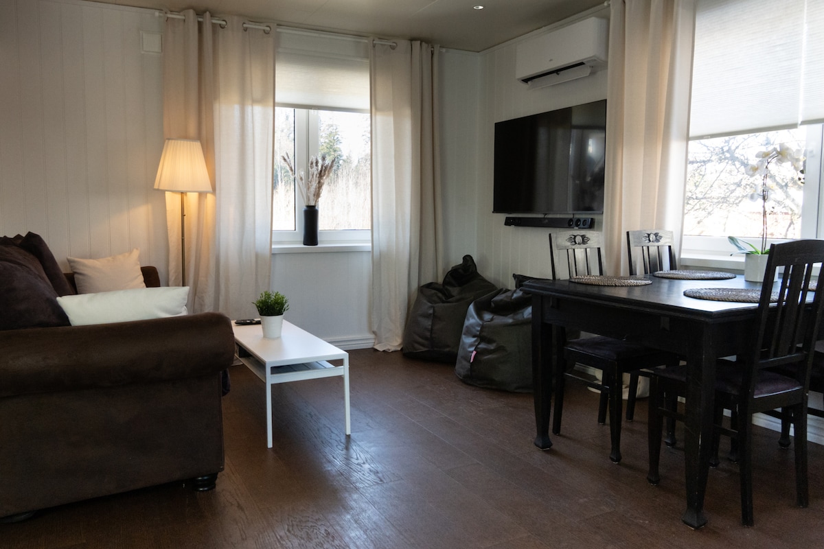Charmig liten stuga som är ny renoverad med högstandard. 1200m från tågstationen och 300m från grönområde med motionsslinga. Sovrummet har AC ,en säng 140cm ,TV samt wifi. Fullt utrustat kök med induktion, micro, ugn och golv värme. Badrummet har tvättmaskin med inbyggd torktumlare toalett, handfat samt dusch och golvvärme. Huset är djur och rökfritt.