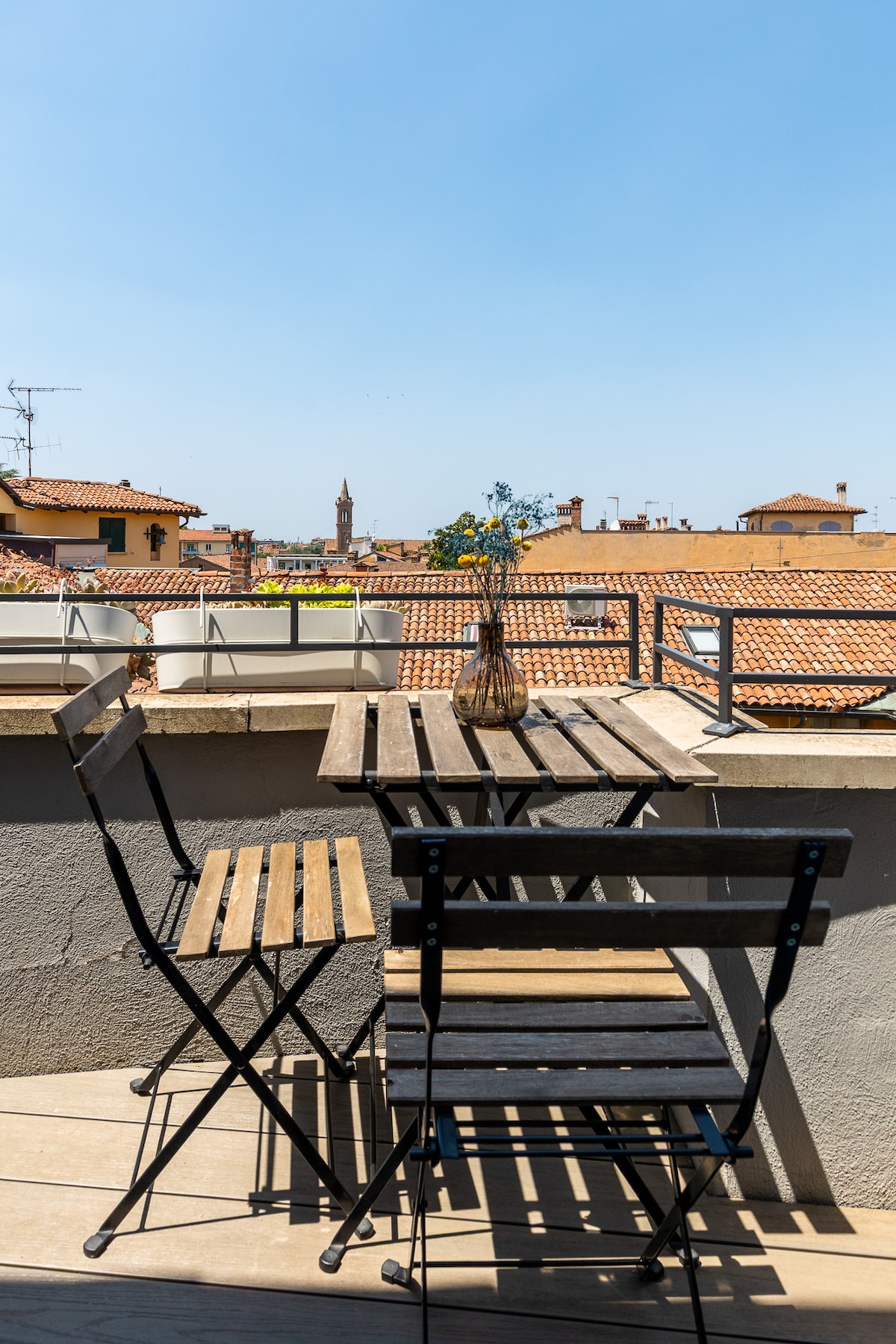 ◦ Lovely, bright and super quiet attic with a gorgeous view of the city ◦ Clean and comfortable, ideal for a delightful stay in Bologna ◦ Very central location. The perfect spot to explore the city centre by walk Equipped with all the comforts you need for a pleasant stay: 1 double bed Patio where you can have breakfast and meals Powerful Wi-fi A/C Spacious Table where you can work/study Bathroom with shower Warm hardwood parquet Windows on quiet internal court