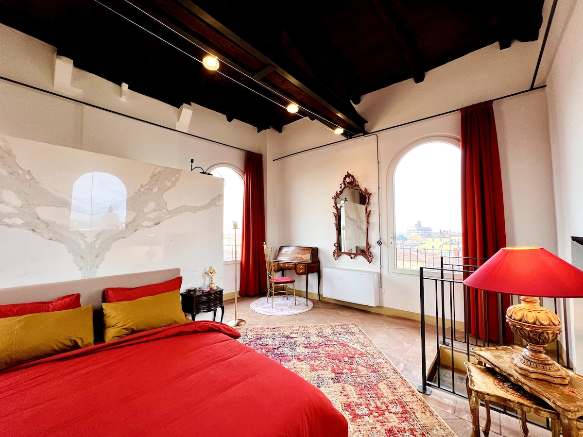 ◦ Lovely, bright and super quiet attic with a gorgeous view of the city ◦ Clean and comfortable, ideal for a delightful stay in Bologna ◦ Very central location. The perfect spot to explore the city centre by walk Equipped with all the comforts you need for a pleasant stay: 1 double bed Patio where you can have breakfast and meals Powerful Wi-fi A/C Spacious Table where you can work/study Bathroom with shower Warm hardwood parquet Windows on quiet internal court