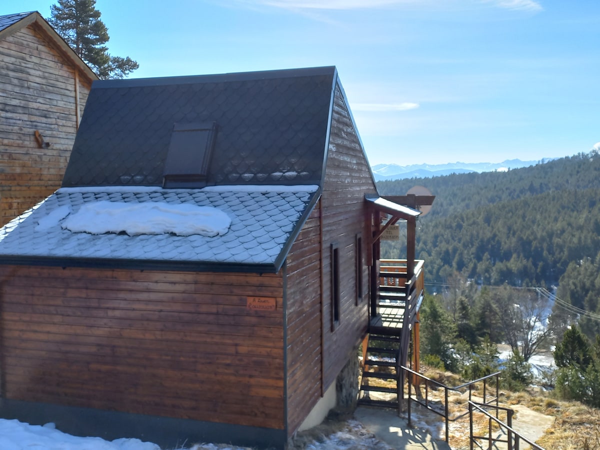 Maison proche four solaire odeillo. Maison pour 6 personnes 1 chambre double + grande mezzanine avec deux lits doubles et salle de jeux pour enfant. Grande terrasse plein sud avec vue, salon de jardin, jardin clôturé pour animaux. 200m arrêt navettes station de ski, 5 minutes à pied. Gare train jaune à proximité. 10 minutes en voiture du centre ville font romeu, 5 minutes Super U et Lidl, 50 minutes d'Andorre.