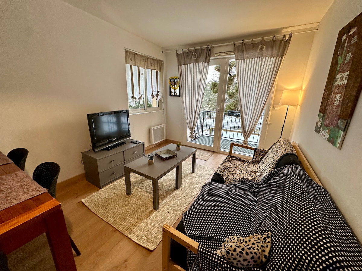 Profitez d’un séjour chaleureux à la montagne dans ce bel appartement rénové, lumineux et parfaitement situé à Bolquère, à 800 m de la station Pyrénées 2000 / Font-Romeu. Navette gratuite devant l’appart • 48 m² confortablement aménagés pour 4/6 personnes • Plein sud • Salon cosy avec canapé-lit et coin repas • Cuisine équipée • 2 chambres + dressing • Salle de bain • Jardinet privatif pour profiter du soleil • Grande cave • Parking privé