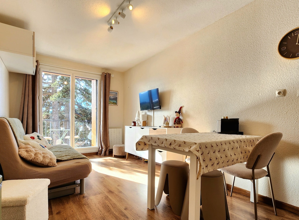 Situé à Bolquère Pyrénées 2000, séjournez dans un appartement cosy ( 30 metres carrés agrémenté d'une grande terrasse avec vue sur un grand et beau pré verdoyant ) avec accès gratuit à un espace avec bain à remous, piscine intérieure, salle de jeux. Décoré dans un style alpin, l' appartement, chez Lyli & compagnie, vous permettra de vous ressourcer et de vous évader dans le superbe écrin vert (ou blanc en hiver) qui l'accueille. Activités très nombreuses et variées. Regardez nos photos.