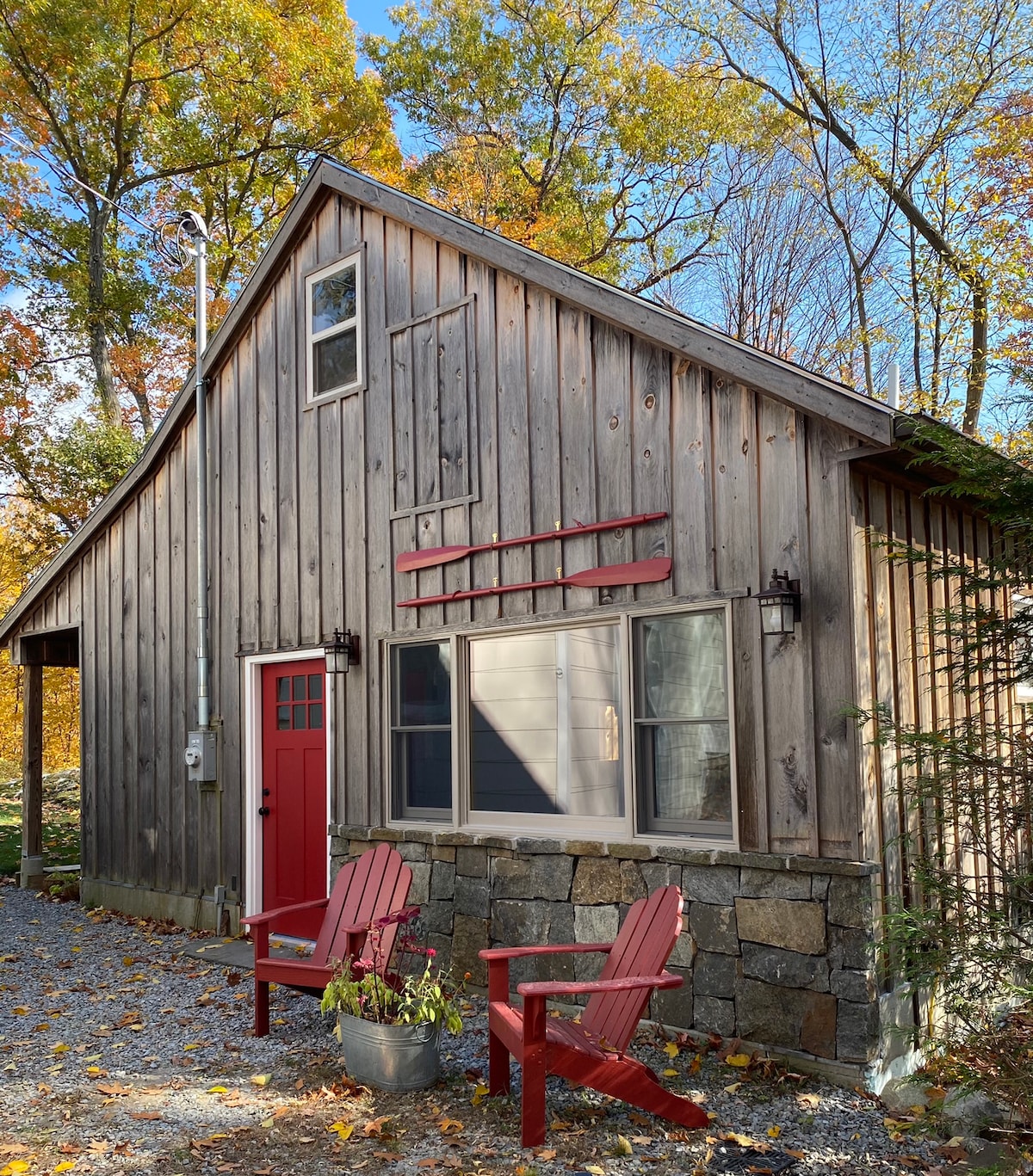 Relax in this cozy red barn! Rustic charm meets modern luxury. 1 min off I‑87 1 min to Schroon River 2 mins to Loon Lake 5 mins to Brant Lake 25 mins to Gore Mtn + Lake George Near tons of hikes, lakes & swimming holes +close to town! Unwind in the hot tub, cook in the full kitchen, and gather by the fire pit. Features: dining area, big shower, private bedroom, loft w/ 2 sofa beds, desk, big lawn, BBQ, ski chair swing + LVL 2 EV charger. Fast Wi-Fi • Self check-in • Please read house rules