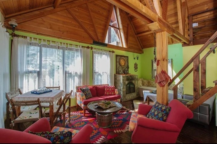 Çiftliğimizin içindeki yeni, konforlu ve manzaralı evlerimizde sıcak su, sınırsız Wifi, yerden ısıtma, tam donanımlı mutfak ve şömine mevcut. Evlerimiz 6 kişilik yatak kapasitesine sahip olmakla birlikte ortak alanları 4 kişi için idealdir. Gün içinde çiftlikteki eşekler, koyunlar ve kazlarla vakit geçirebilir, yoga iskelemizde yoga yapabilir ve kar mevsiminde kızaklarla kayabilirsiniz. Ayrıca çiftliğimizin bitişiğinden başlayan ormanın içinde pek çok yürüyüş rotası mevcut.
