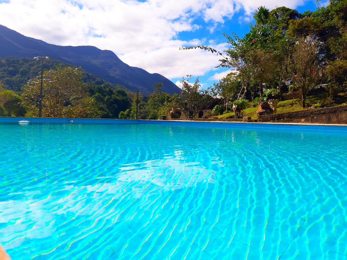 Casa na Serra super aconchegante e espaçosa!! O quarto em um mezanino de 22 metros quadrados, no térreo uma sala com dois ambientes de 44 metros quadrados, cozinha americana ampla. Banheiro social com banheira de hidromassagem e aquecedor de água nas torneiras principais. Área externa com piscina, churrasqueira, fogão a lenha , banheiro e área de serviço. Vista panorâmica da Serra com um lindo nascer do sol. Lugar calmo em meio a naturaza com rios.