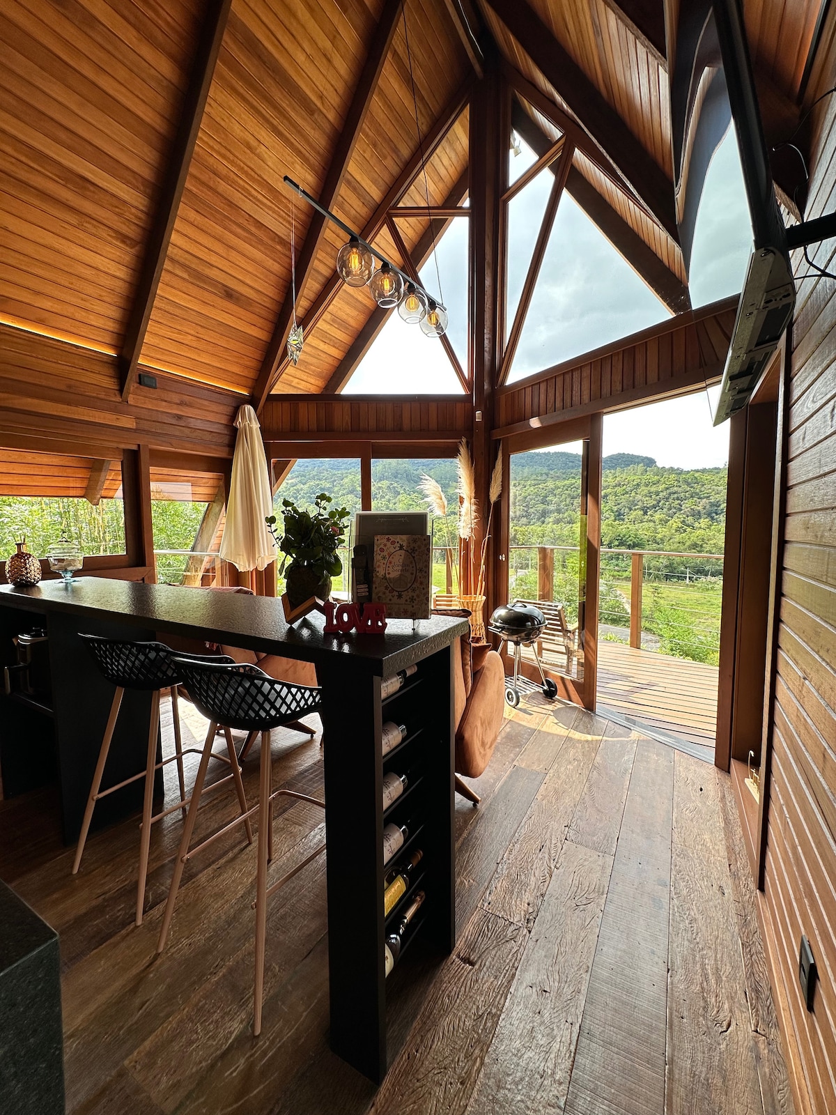 A Cabana LUZ, é a segunda da Villa Vida Cabanas e idealizada para casais, grupos e famílias. Charmosa ,elegante e equipada para proporcionar dias inesquecíveis . Possui aquecimento a gás, calefator, ar condicionado quente e frio e eletrodomésticos modernos para seu conforto. Com área de 180 m2 , a Cabana Luz acomoda confortavelmente até 5 pessoas nas duas suítes e sofá cama, sala integrada, cozinha completa, banheira e um deck maravilhoso com churrasqueira em meio a natureza exuberante.