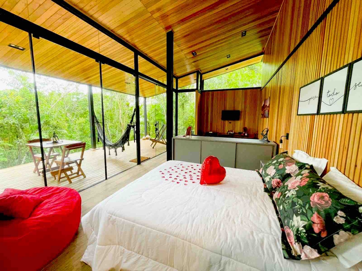 Você vai adorar a decoração cheio de estilo deste charmoso lugar para ficar, conectado a natureza a 5km centro de Nova Veneza SC, via asfalto, voce encontra chale container Água com 70m² de espaço privativo com todo conforto que voce merece, banheira de hydro massagem, cafeteira, lareira ecologica, arcondicionado, frigobar, tv Smart, wifi, secador de cabelo em um amplo deck para descansar a dois ou curtir em familia. Venha viver este lugar magico.