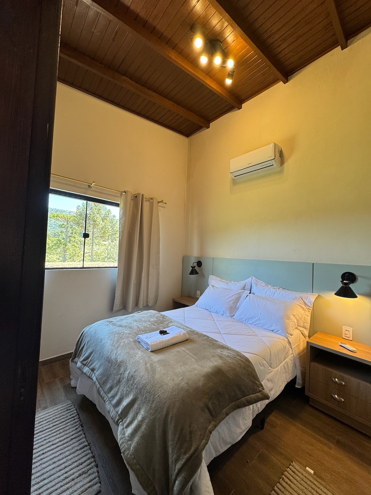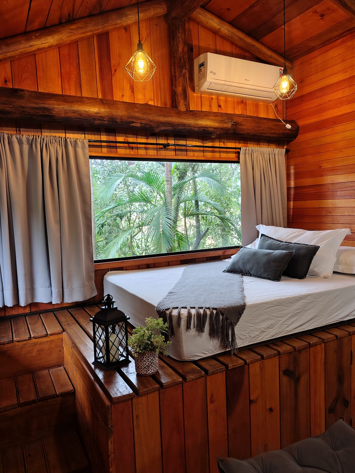 A Cabana LUZ, é a segunda da Villa Vida Cabanas e idealizada para casais, grupos e famílias. Charmosa ,elegante e equipada para proporcionar dias inesquecíveis . Possui aquecimento a gás, calefator, ar condicionado quente e frio e eletrodomésticos modernos para seu conforto. Com área de 180 m2 , a Cabana Luz acomoda confortavelmente até 5 pessoas nas duas suítes e sofá cama, sala integrada, cozinha completa, banheira e um deck maravilhoso com churrasqueira em meio a natureza exuberante.
