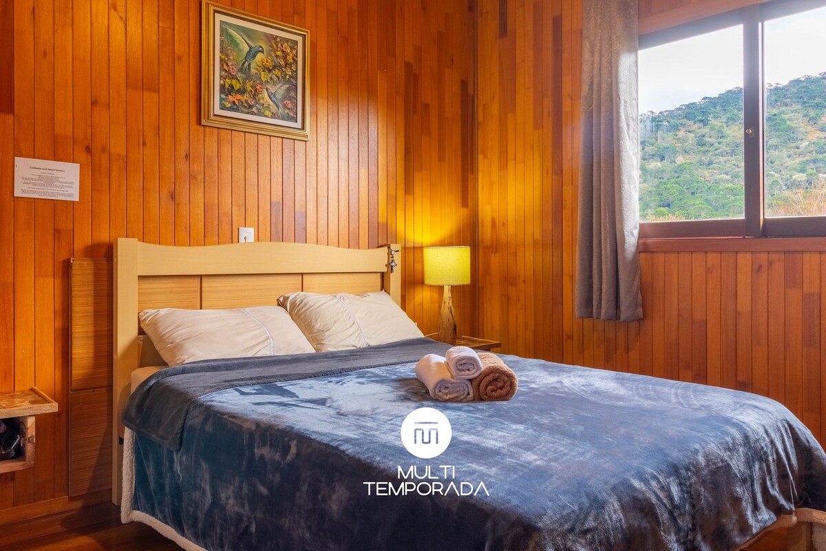 O Chalé é uma cabana encantadora e muito aconchegante. Acomoda até 4 pessoas confortavelmente, crianças e pets são super bem vindos! *Possuí 2 quartos com cama de casal, banheira, Smart TV, Wi Fi, roupas de cama, toalhas, lareira, cozinha com fogão, frigobar e demais utensílios de cozinha. *Não servimos refeições (café da manhã estará disponível com um acréscimo). Venha para o Recanto do Vale vivenciar as maravilhas que somente a Serra pode proporcionar.